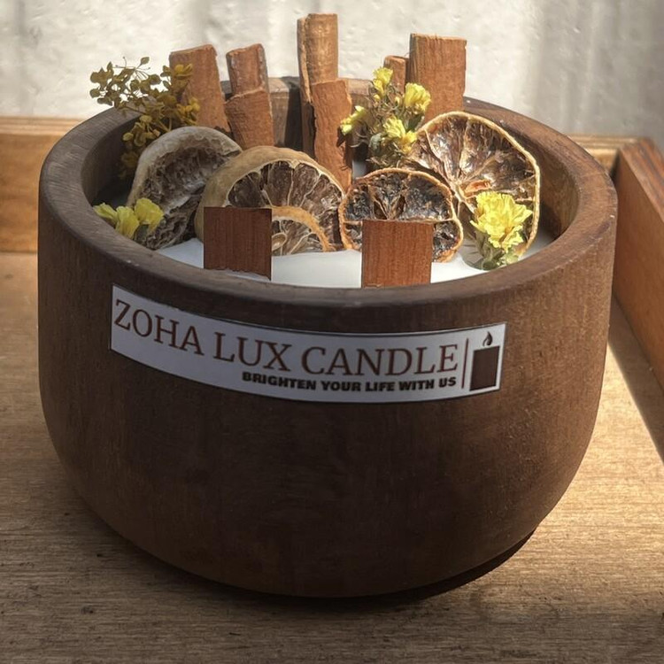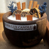 شمع کاسه چوبی با دیزاین لیمو دارچین، پرتقال دارچین،دریایی