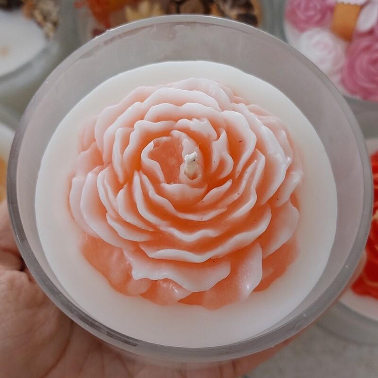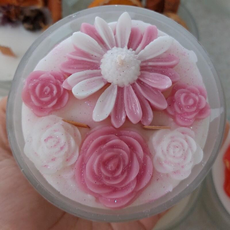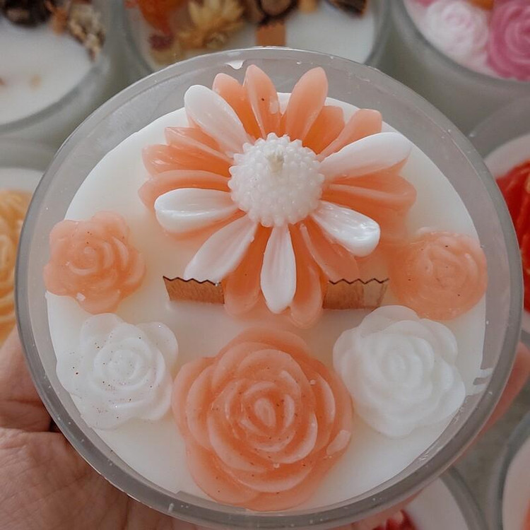 شات شمع گل قطر 10 در ارتفاع 10 در رنگبندی دلخواهتون.. گل ریز و گل درشت چوب دارچین و پرتقال
