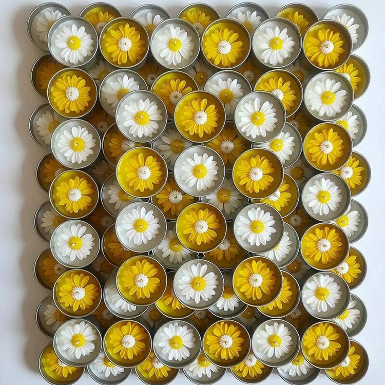شمع قوطی فلزی بابونه یا تزئینات دیگر در رنگبندی دلخواه
