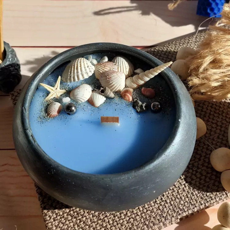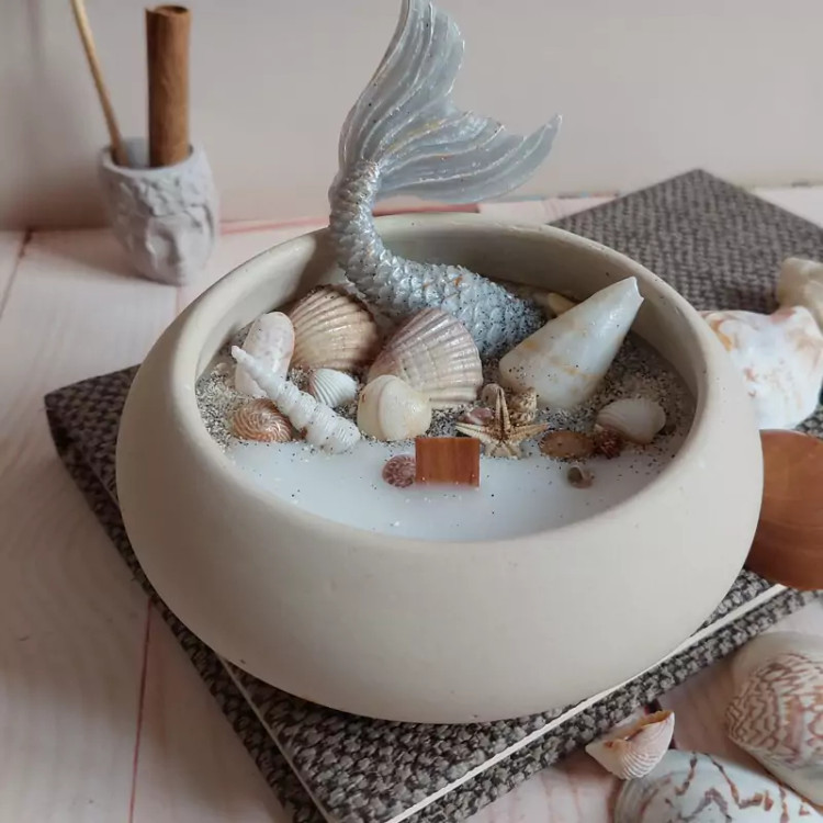 کاسه گرد بتنی جنس سنگ مصنوعی دیزاین شده با صدف های طبیعی دریایی👌🥰🤩
